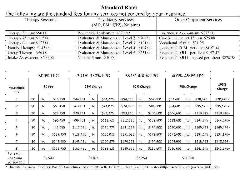 No one is denied access to services due to inability to pay. In accordance with Newport Mental Health’s policy, a sliding fee scale system is in place to adjust costs based on your income and family size. If you need assistance, please contact our billing department or inquire at the front desk.